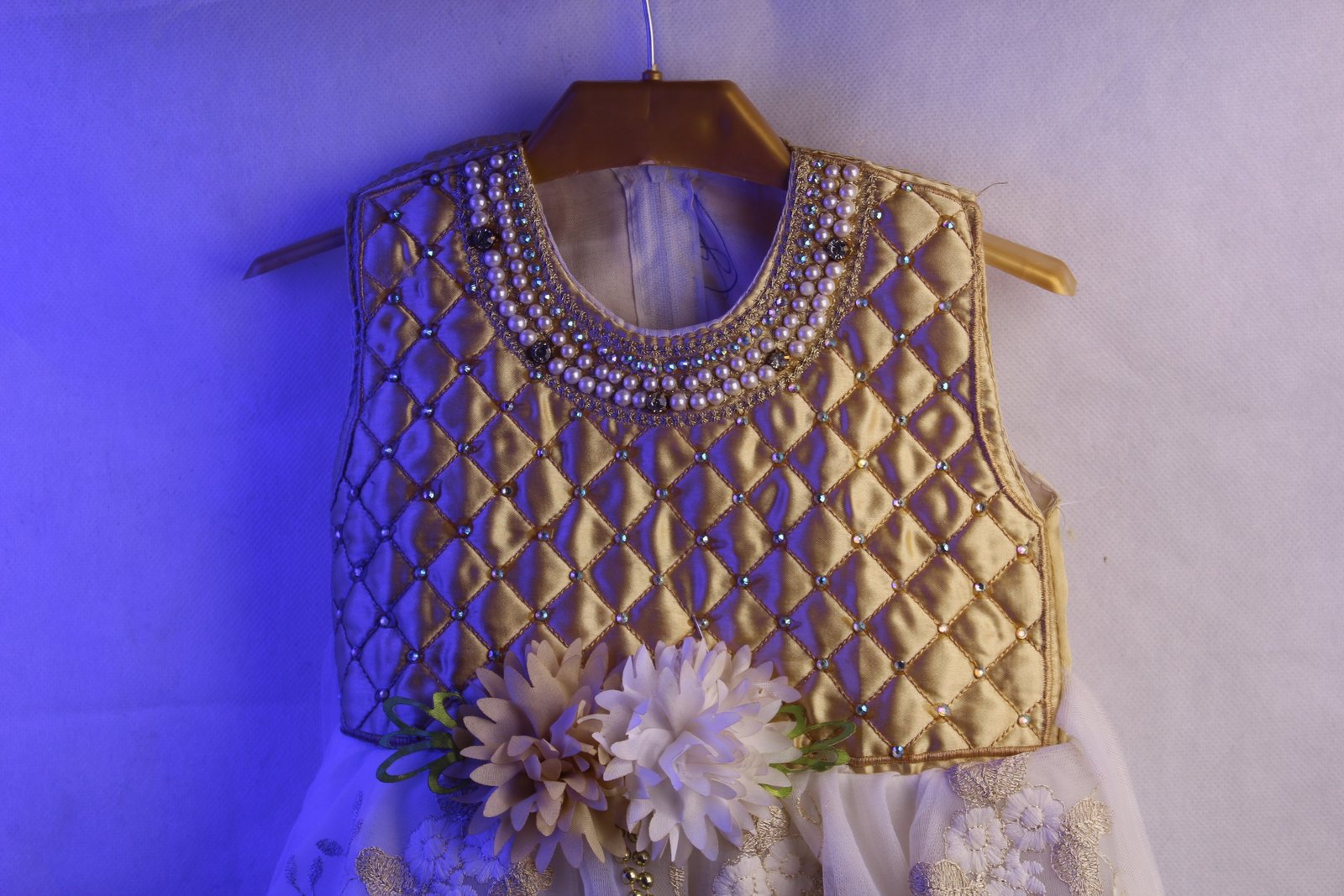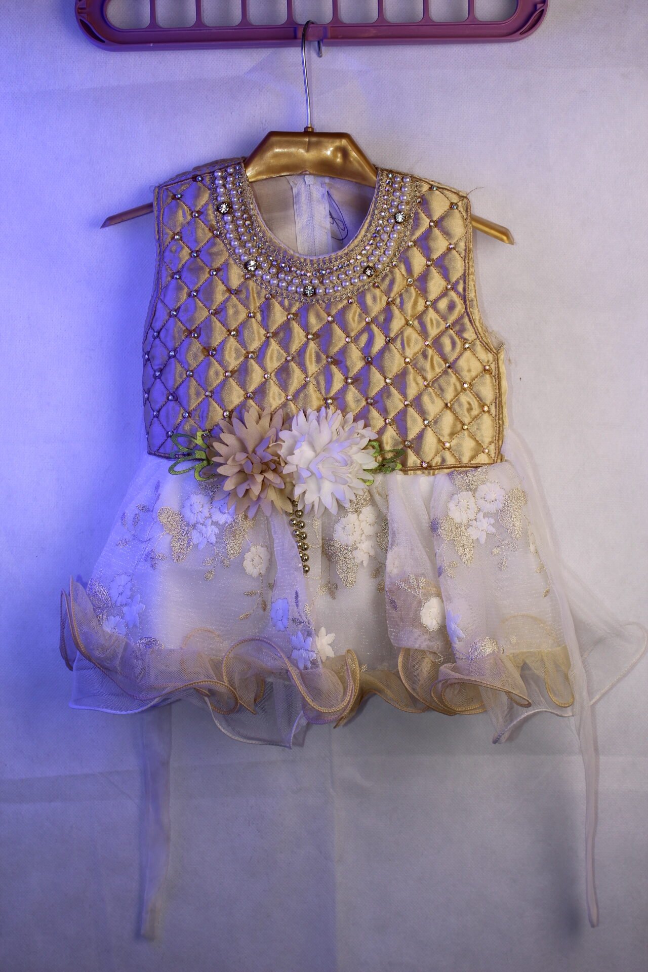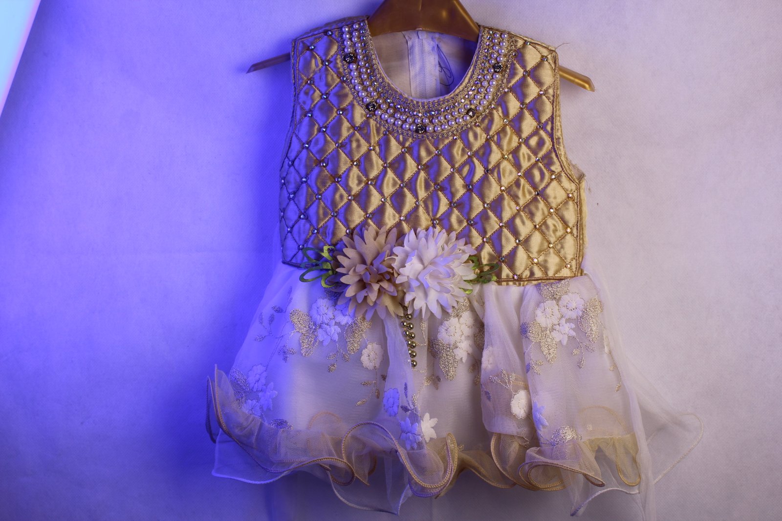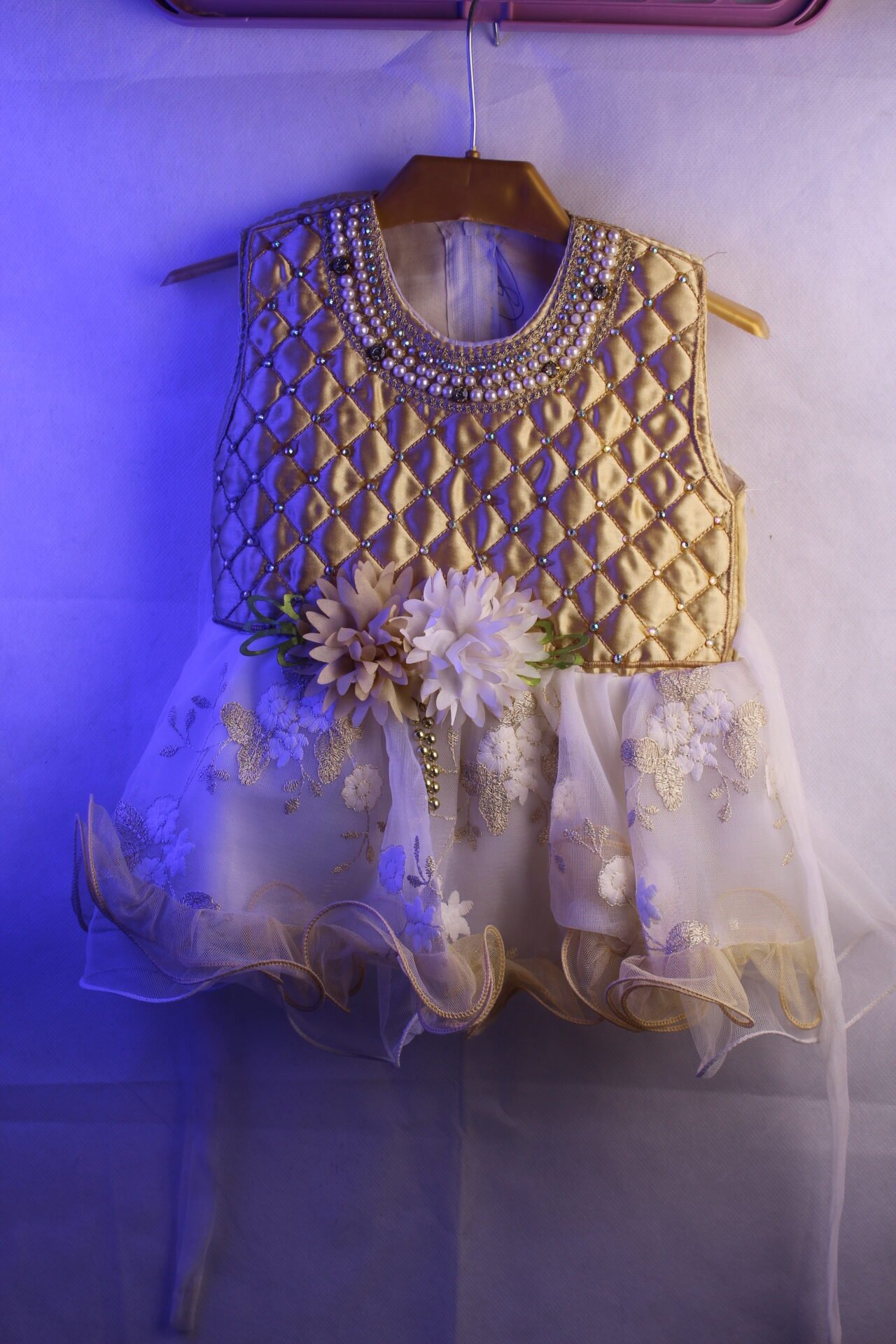 Whether you’re attending a family gathering, celebrating a milestone, or capturing memorable photos, this White Golden Frock is a versatile wardrobe addition. The classic white color with golden embellishments exudes sophistication, while the easy-to-use design makes dressing up your baby quick and hassle-free. It’s also an ideal gift choice for new parents or baby showers, blending style with practicality in the most charming way.